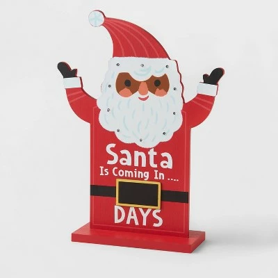 You can keep the excitement going in the days before Christmas with the Battery Operated ‘Santa Is Coming’ Countdown Sign from Wondershopβ’. This decorative Santa figure/sign has the message βSanta Is Coming in β¦ Daysβ and includes a chalkboard-style square on which the number can be written. Plus, it lights up around Santaβs head for even more festive fun.
