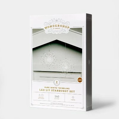 Light up the night with the 12 inch 2-Pack LED Christmas Starburst White from Wondershopβ’. Battery operated for easy placement, these LED Christmas light stars will twinkle in the night to make even the shortest days of the year a bit brighter. The tiny white LEDs offer a gentle, twinkling light, and they’re set on thin starburst shapes that look great hanging or set out on a sideboard for a little extra seasonal flair. Hang them from the eaves, off of the tree in your yard or on a porch to add a little extra shine to the season.