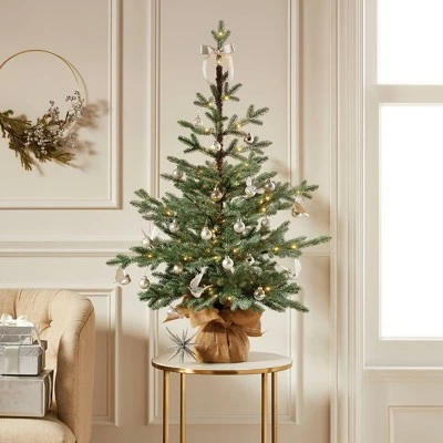 The 3.5-Foot Pre-Lit Glittered Balsam Fir Artificial Tree Dew Drop LED Lights from Wondershopβ’ makes a great alternative to a full Christmas tree if you’re looking for an easier decorating option. This artificial Christmas tree stands just 3.5 feet tall βΒ small enough to fit in minimal space, but large enough for a more striking display than a mini Christmas tree. The tree is designed to look like a balsam fir for a classic evergreen look, and it comes set in a burlap bag for a rustic touch. Already pre-lit with 120 LED lights, the small Christmas tree is ready to display as is, but also looks great given some added personality from your own favorite embellishments like ornaments and tinsel.