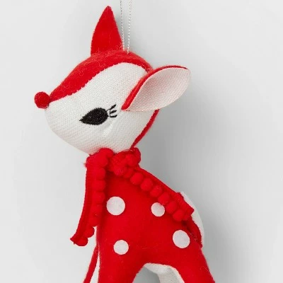 Bring classic style to your holiday decor with this 4-Count Fabric Retro Reindeer Christmas Tree Ornament Set from Wondershopβ’. This Christmas tree ornament set includes four fabric tree ornaments designed as small reindeer β two in red and two in green β featuring white polka dots and wearing same-hued scarves with a pompom trim. You can pair them with different animal-themed ornaments, lights and garlands to create a stunning, festive display, and best of all, each ornament features an attached loop for easy hanging from your Christmas tree.