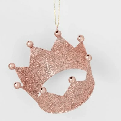 Add shiny flair to your entryway tree with this 4-Pack Metal Glitter Crown Christmas Tree Ornament Set from Wondershopβ’. This set of Christmas tree ornaments adds to your seasonal holiday decor. It includes four metal crown ornaments in gold, white, silver and rose pink glittery finishes that are adorned with matching bead accents for a pretty whimsical look. Plus, they come with an attached loop and string for easy hanging.