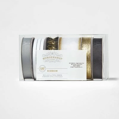 Deck your halls and walls or accent your gifts in festive style with the 6-Count End Fabric Ribbon from Wondershopβ’. This decorative ribbon set includes six fabric ribbon rolls in white, silver, black and gold with different textures β from metallic to striped and mesh designs to fringed trim and more β to add a special touch to your gifts. Great for creating beautiful bows and flowers, you can use these versatile ribbon rolls for tying around your gift bags, embellishing floral arrangements or decorating your home on special occasions.