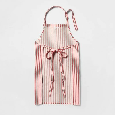 The Striped Apron from Wondershopโข gives you a stylish and festive way to keep your clothes away from stains and splatters when youโre whipping up those holiday meals. Made from 100% cotton fabric, this apron is adorned with red and green stripes to add a touch of holiday style. It has matching ties on the waist and an adjustable neck strap that help you get your perfect fit every time as well as quick on and off. Simply throw it in the washing machine for easy upkeep between wearings.
