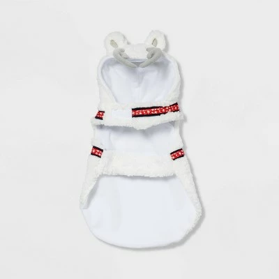 Dress your furry friends for the holidays with the Dog and Cat Hoodie Costume from Wondershop™. This full-body pullover costume showcases a fuzzy white design with snowflake accents and cute silver bells. Plus, the top of the hood is adorned with antlers for extra fun. Soft fabric and hook-and-loop closures make this hoodie costume one your pet will want to wear.