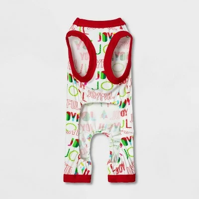 Your furry best friend won’t be left out of coordinated whole-family PJ ensembles when you dress them in this Joyful Dog and Cat Matching Family Pajama Set from Wondershop™. Made from soft cotton with a touch of spandex to keep them in stretchy comfort, these dog and cat PJs are designed in a cream hue with an allover print of the word “JOYFUL” in different fonts and colors. Plus, they feature a pullover style that makes it easier to dress fussy pets. Have your family wear the matching PJs from the set to complete the fun seasonal ensemble.