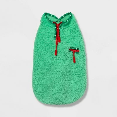 If you’re looking for a fun and easy way to keep your pet warm during cold winter weather, look no further than this Fleece Dog and Cat Jacket from Wondershop™. Made from soft and lightweight fleece fabric, this dog and cat jacket is designed in a light green hue with multi-shade green stripes at the neck and leg openings. The zipper closure helps keep the jacket secured around their body, ensuring they stay cozy whether you’re cuddling inside or heading outdoors to brave the cold.