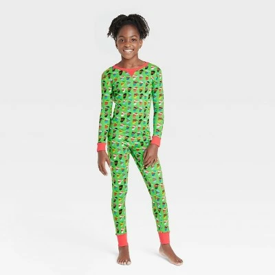 The whole family can cuddle up by the fire in sweet holiday style wearing this Multi Santa Print Matching Family Pajama Set from Wondershop™. This set of kids’ PJs includes a long-sleeve sleep shirt and pants, both made from 100% cotton in a green hue with an allover print of different Santa faces. The crewneck top and the full elastic waistband on the pants provide a snug fit to keep them cozy, and you can have the rest of the family wear the other pieces from the set for fun holiday photo ops.