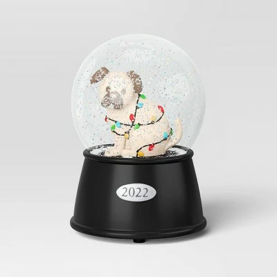 If youβre a pug parent, this Pug Snow Globe from Wondershopβ’ is the perfect Christmas decoration for you. The snow globe depicts a cute pug wrapped in Christmas lights and when shaken, the clear globe fills with multicolored βsnow.β The black base is adorned with the year β2022β so you can keep this fun accent piece displayed to commemorate the year that was.