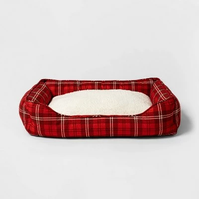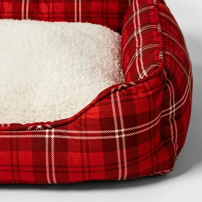 Your dog will snooze away the night in complete comfort in this Red Plaid Cuddler Dog Bed from Wondershop™. Made from soft fabric with ample filling, the bed is designed in a rectangular shape with red plaid print. Best of all, the machine-washable cover makes it easy to give the bed a quick refresh as needed.