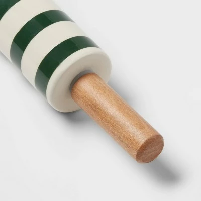 The Stoneware and Wood Striped Mini Rolling Pin from Wondershopโข is a handy kitchen staple you’ll love using to hone your baking skills, and the green stripes make it perfect for the holiday season. The stoneware mini rolling pin is great for crushing cookies and crackers for toppings, or to roll out cookie, bread or pie dough. You’ll love how comfortable the rolling pin is to hold with the wood handles, and how easy it is to hand wash.