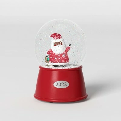 Accentuate your festive decor with this Whimsical Santa Snowglobe from Wondershopβ’. This decorative snowglobe features a waving Santa Claus enclosed in a clear glass dome attached to a weighted red base with “2022” embossed on the front. A sweet accent piece for your coffee table, console table, mantel or desk, this festive snowglobe fills with faux-snow and colorful confetti when shaken to create magical wintry charm.